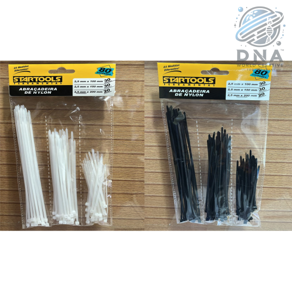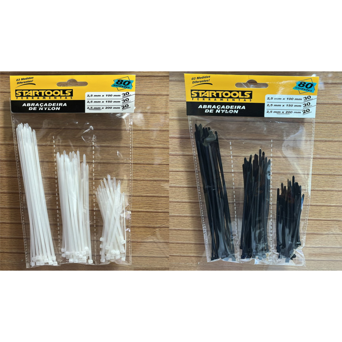 ABRAÇADEIRA DE NYLON MISTA COM 80 PCS AR0368 BRANCA