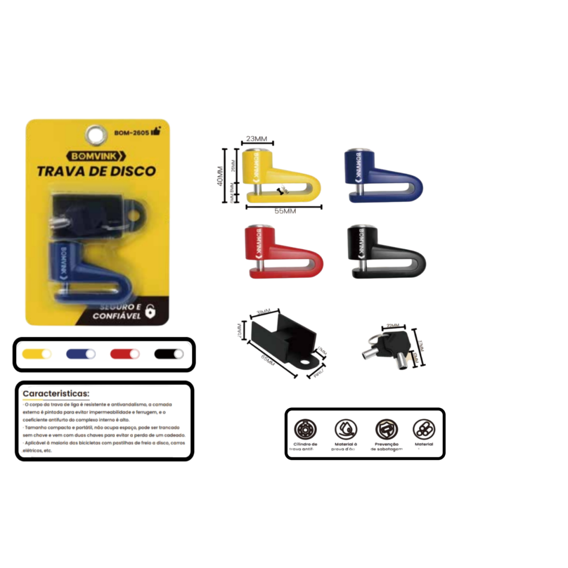 CADEADO PARA MOTO TRAVA DISCO ANTI FURTO BOM 2605