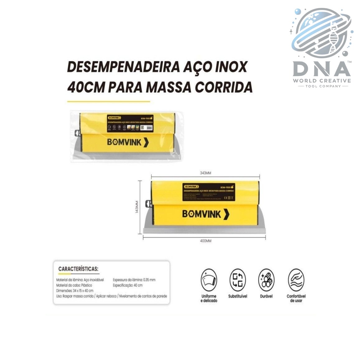 DESEMPENADEIRA DE AÇO INOX LISA 40CM P/ MASSA CORRIDA E GESSO BOM-1566