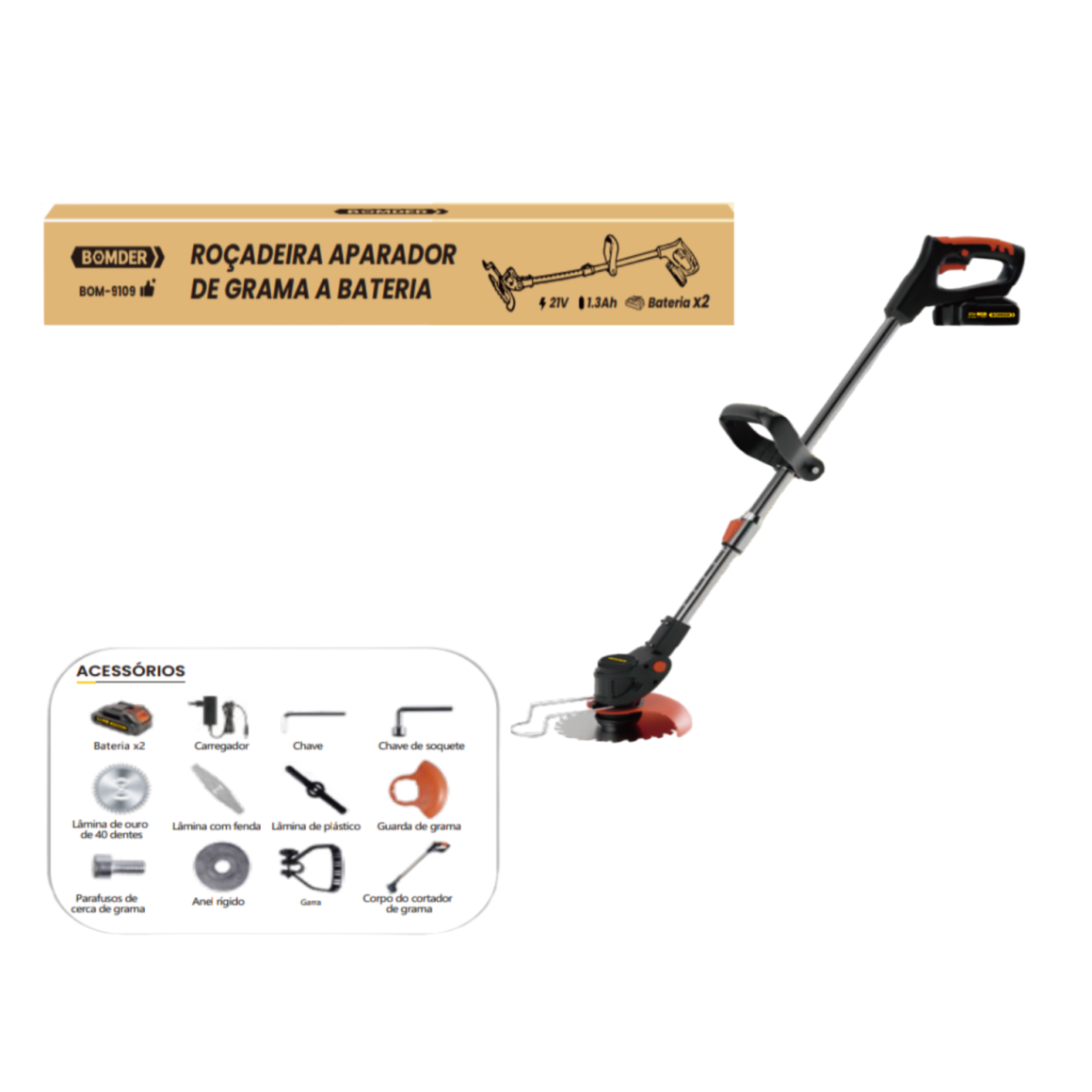 ROÇADEIRA APARADOR DE GRAMA A BATERIA 21V BOM-9109